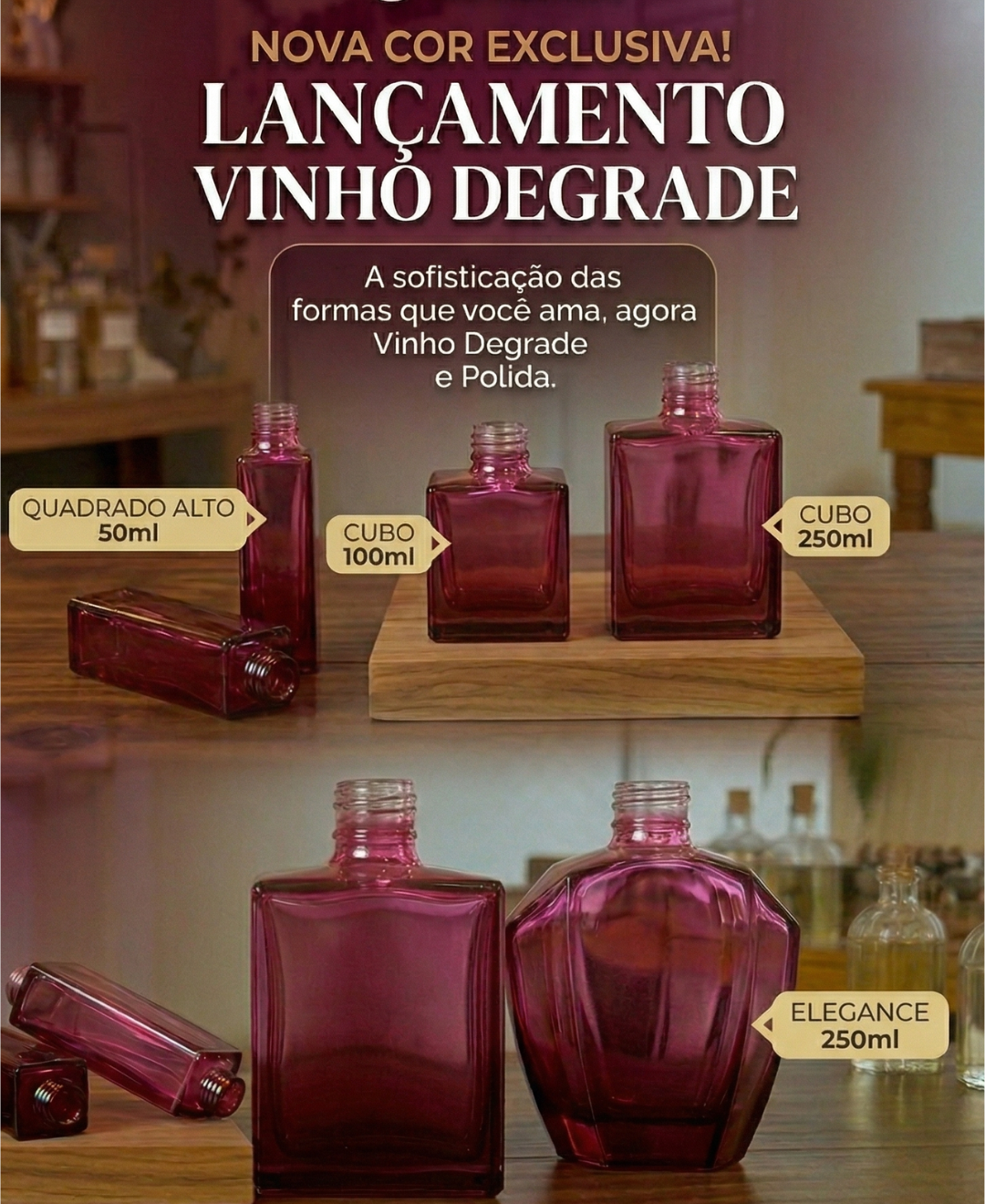 Em até 1x de R$ 9,50 sem juros À vistaR$ 9,03no Pix Frasco Elegance Degrade Vinho 250ml