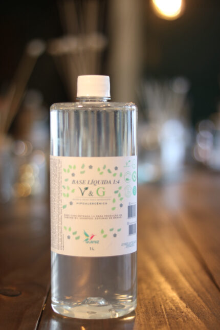 A Base Líquida Concentrada 1/4 V&G na versão transparente ou perolada é um produto neutro, hipoalergênica feito com matérias primas de origem vegetal e natural. Com 36% ativos pode ser usada para a formulação sabonetes líquidos, xampus, géis de banho, banhos de espuma, etc.