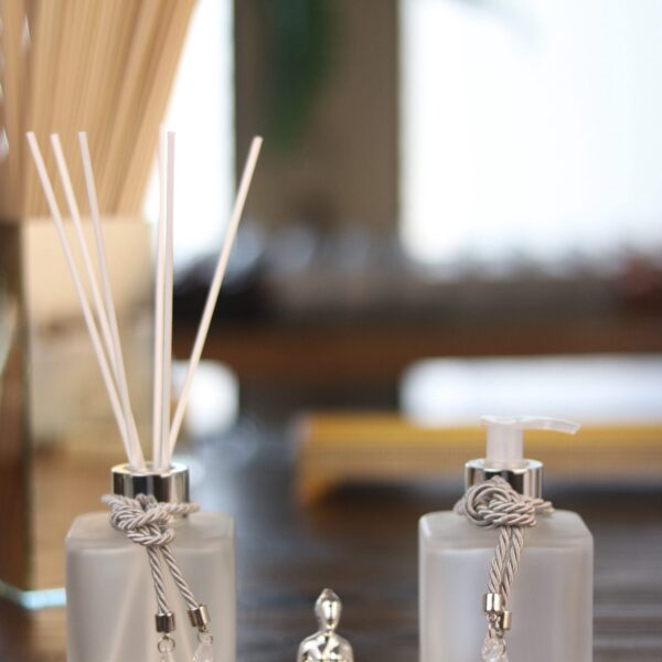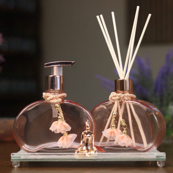 Porta-sabonete líquido e aromatizador de ambiente com design sofisticado.