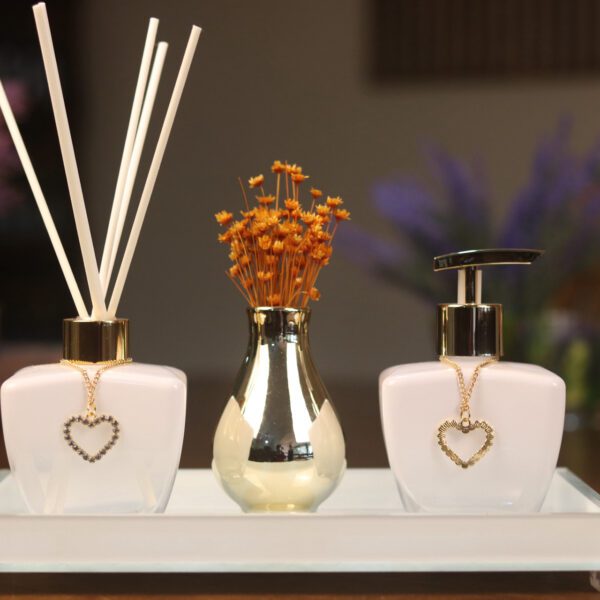 Por que escolher este produto? Este kit une funcionalidade e sofisticação, sendo uma ótima escolha para presentear ou renovar a decoração do seu espaço. Ele oferece a qualidade que só o Mercadão das Essências pode garantir, com um acabamento luxuoso em cada detalhe.