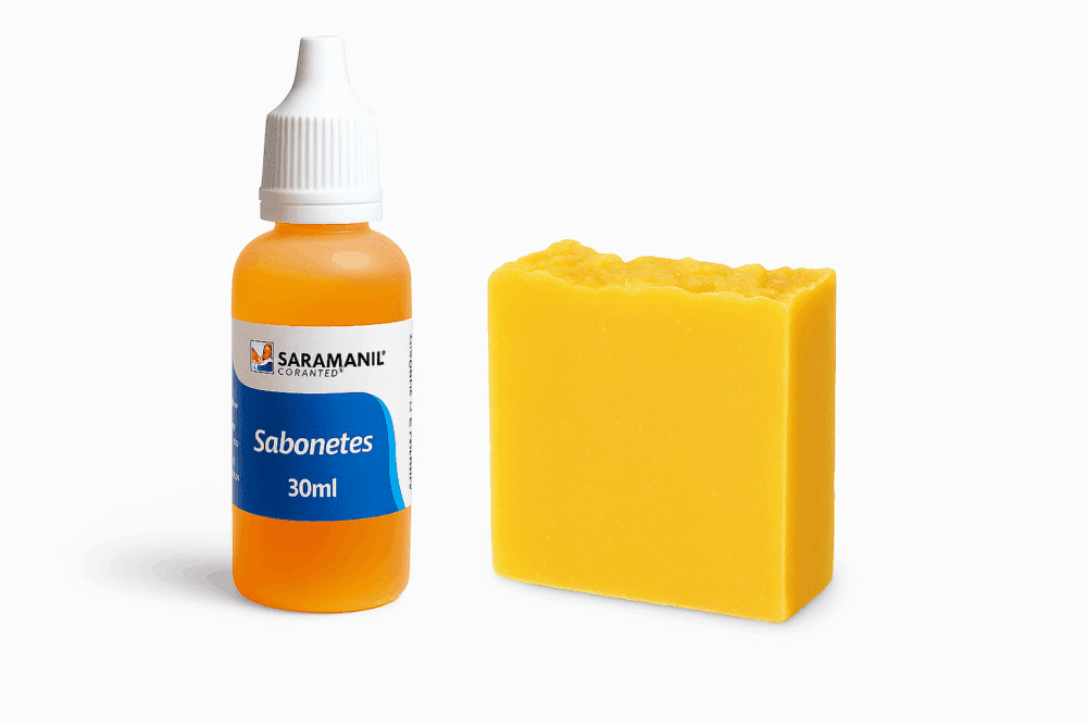 Corante líquido Saramanil amarelo 30ml — ideal para dar cor vibrante e uniforme aos seus sabonetes artesanais. Fácil de usar, solúvel em água e perfeito para destacar suas criações com um toque alegre e luminoso.