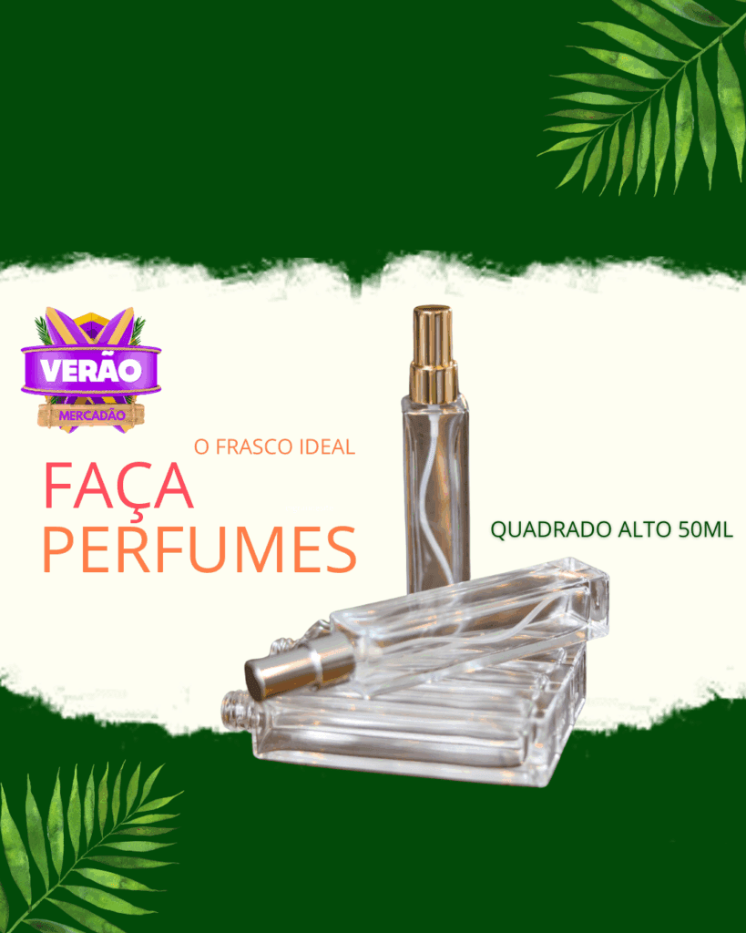 Frasco Vidro Quadrado Alto 50ml R18/410 – A Escolha Perfeita para Empreendedores da Perfumaria Artesanal