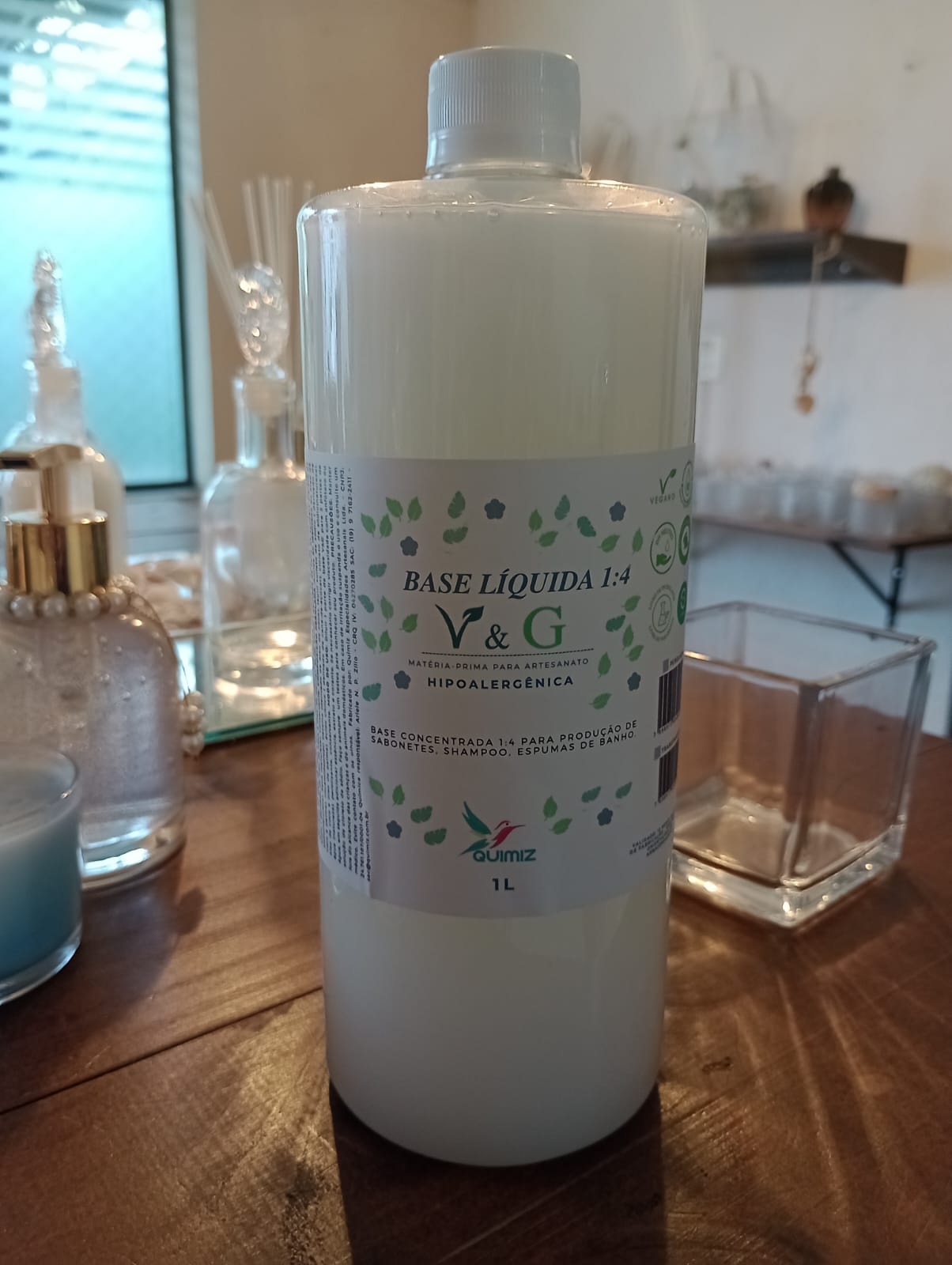 A Base Líquida Concentrada 1/4 V&G na versão transparente ou perolada é um produto neutro, hipoalergênica feito com matérias primas de origem vegetal e natural. Com 36% ativos pode ser usada para a formulação sabonetes líquidos, xampus, géis de banho, banhos de espuma, etc.