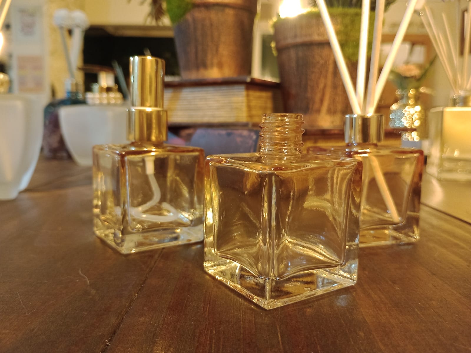 O frasco cubo 50ml ouro translúcido é a escolha perfeita para quem busca sofisticação e versatilidade em cada detalhe. Com acabamento dourado suave e vidro resistente, ele é ideal para perfumes artesanais, mini difusores, lembrancinhas e kits aromáticos personalizados.