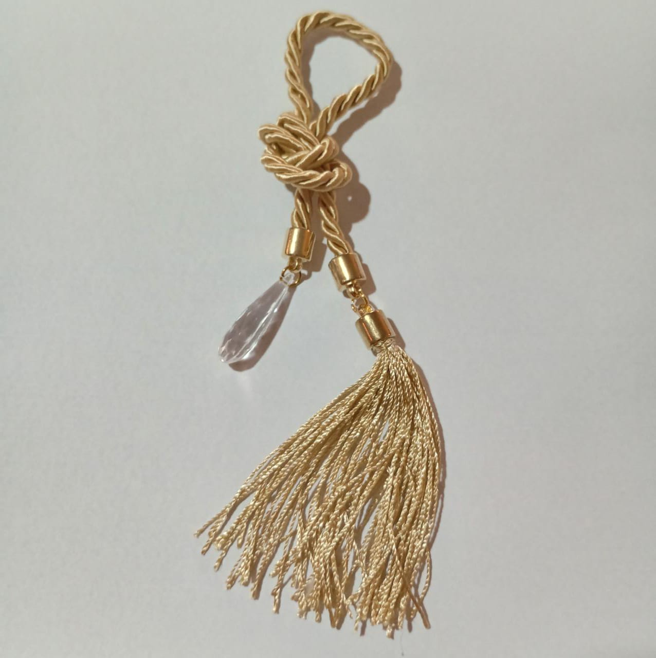 Em até 1x de R$ 4,99 sem juros À vistaR$ 4,84no Pix Pingente Torcel Branco Franja e Cristal Com Dourado