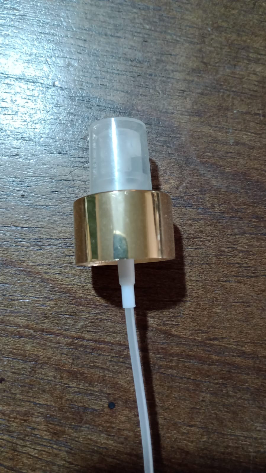 Em até 1x de R$ 7,90 sem juros À vistaR$ 7,66no Pix Válvula Spray Dourada R28/410 Com Sobre Tampa K Transparente