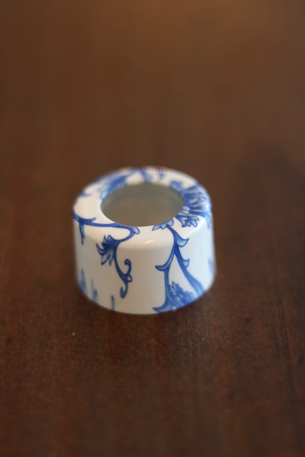 Essas tampas trazem aquele ar de sofisticação artesanal, com desenhos que lembram os tradicionais azulejos azuis e brancos das casas antigas de Portugal. São padrões que carregam história, delicadeza e elegância, e quando aplicados em uma embalagem de aromatizador, criam uma fusão linda entre o clássico e o contemporâneo.