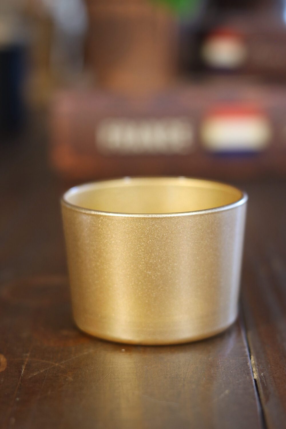 Pote de vidro na cor dourado metálico  , ideal para a preparação  de  vela e outras utilidades de acordo com